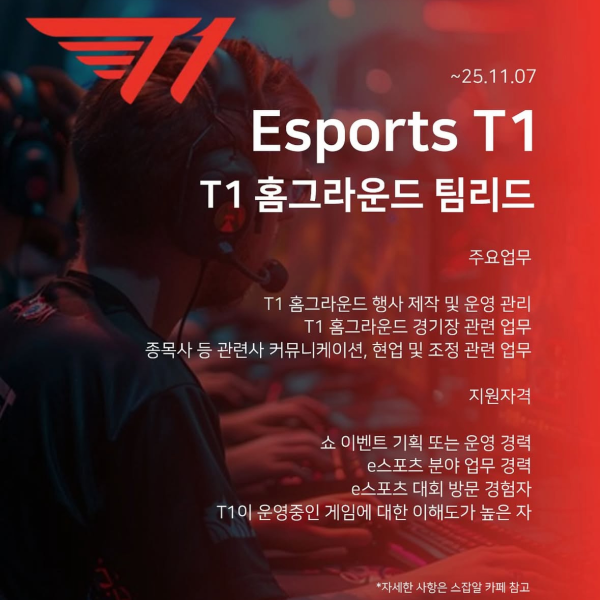 [SKT CS T1] T1 홈그라운드 팀리드 채용