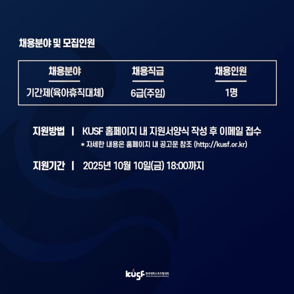[KUSF] 2025년도 한국대학스포츠협의회(KUSF) 제1차 직원(기간제근로자) 채용
