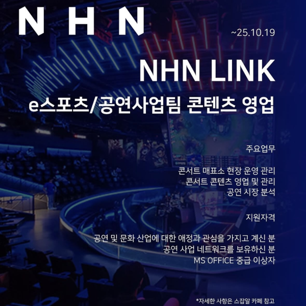 [NHN Link] e스포츠/공연사업팀 콘서트 콘텐츠 영업 담당자 채용