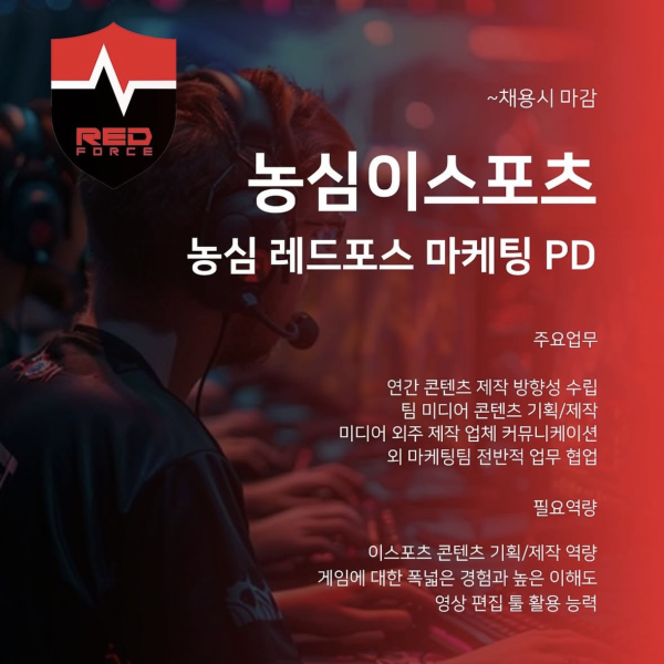 [농심이스포츠] E스포츠 농심 레드포스 프로게임단 마케팅PD 채용