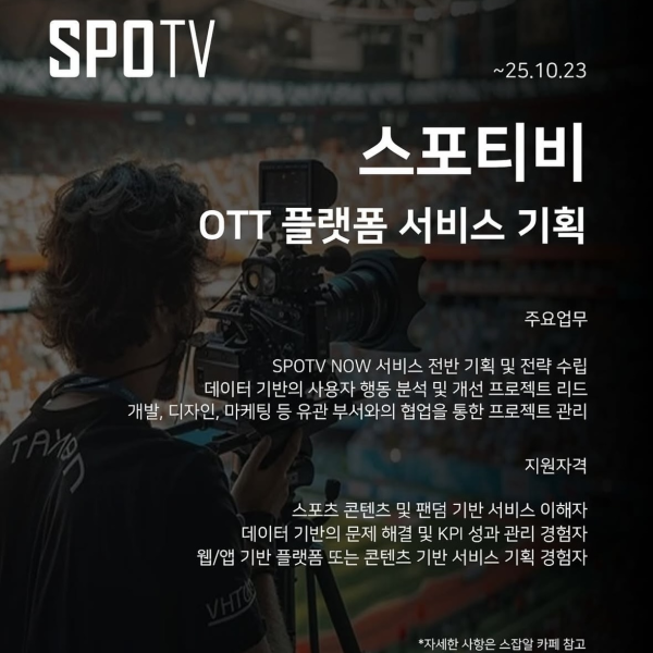 [스포티비] SPOTV OTT 플랫폼 서비스기획 담당자 채용