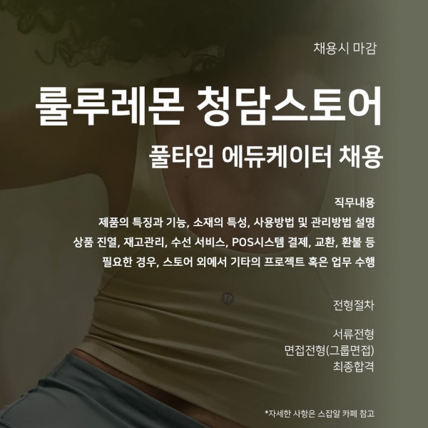 [룰루레몬] 청담스토어 풀타임 에듀케이터 (Educator) 채용