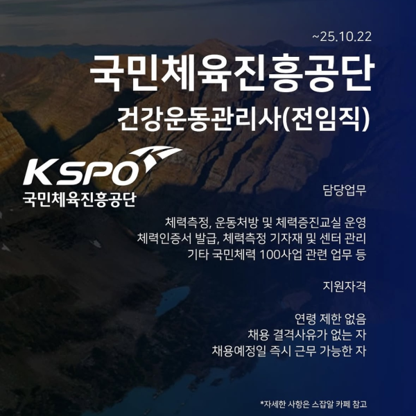 [국민체육진흥공단] 서울올림픽기념국민체육진흥공단 건강운동관리사(전임직) 채용