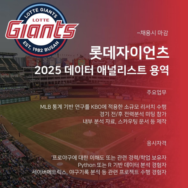 [롯데자이언츠] 2025년 데이터 애널리스트 용역 계약 공고