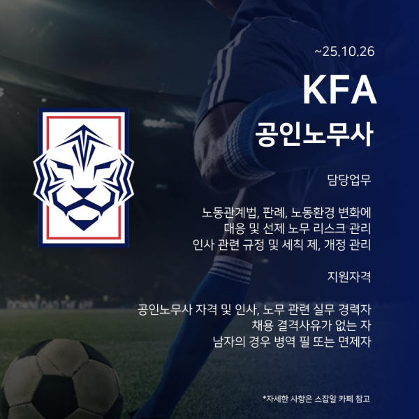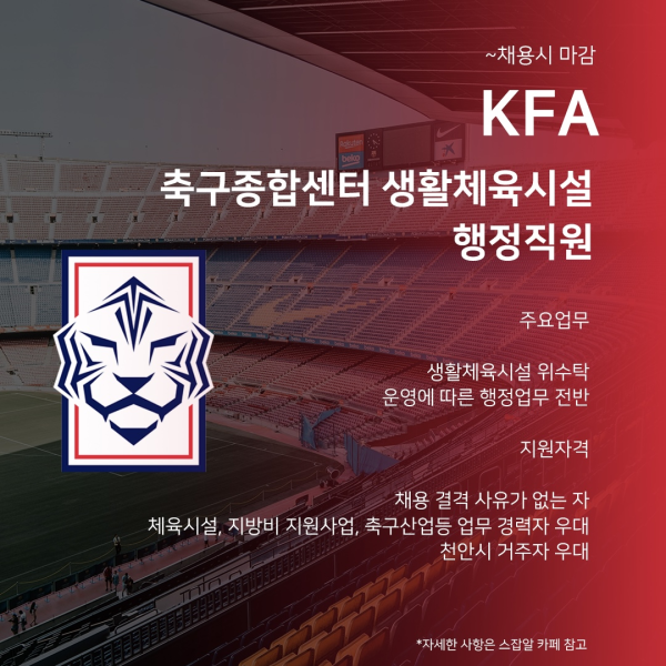 [대한축구협회] 축구종합센터 생활체육시설 행정직원 공개채용