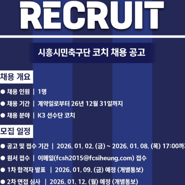 시흥시민축구단 코치 채용 공고