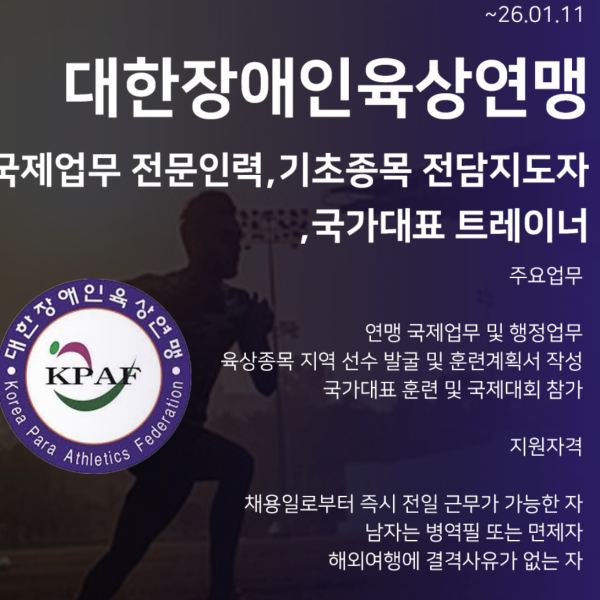 [대한장애인육상연맹] 2026년도 대한장애인육상연맹 계약직 채용 공고