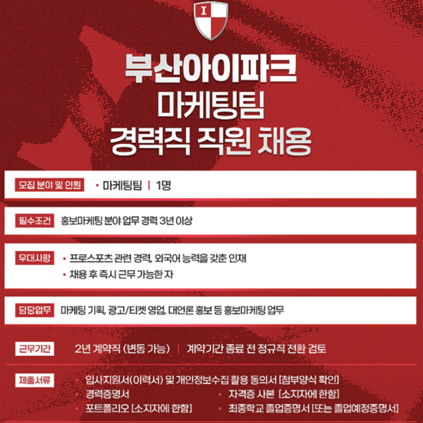 [부산아이파크] 마케팅팀 경력직 채용 공고