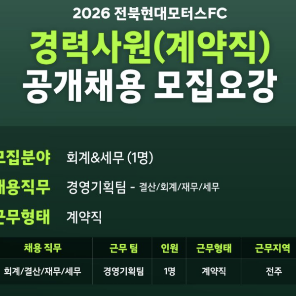 전북현대모터스FC 경력사원 (계약직) 공개채용