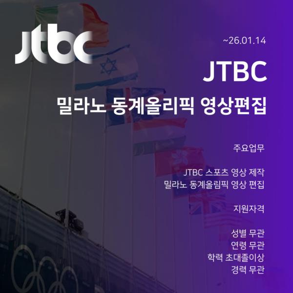 [JTBC] 스포츠문화부 편집자(밀라노 동계올림픽 영상편집) 채용