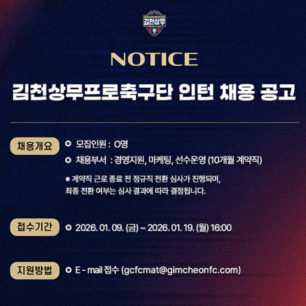 김천상무프로축구단 인턴(전환형) 채용 공고