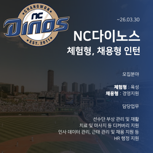 [NC 다이노스] 프로야구단 2026 경영지원파트 채용형 인턴 채용 공고