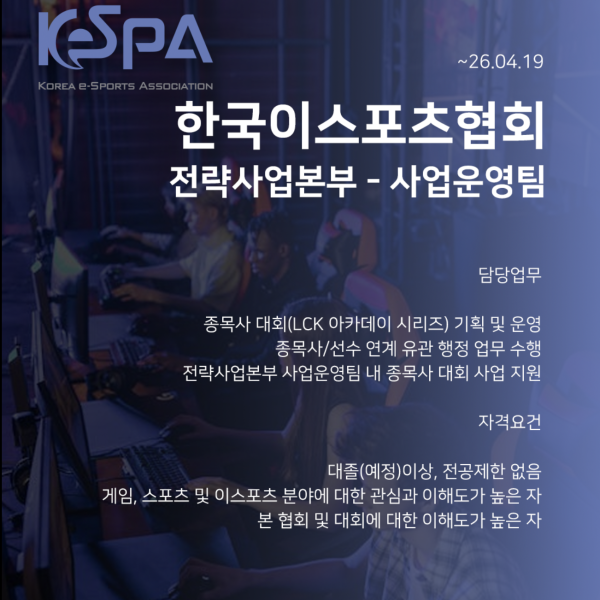 [한국이스포츠협회] 전략사업본부(사업운영팀) 채용공고(신입)