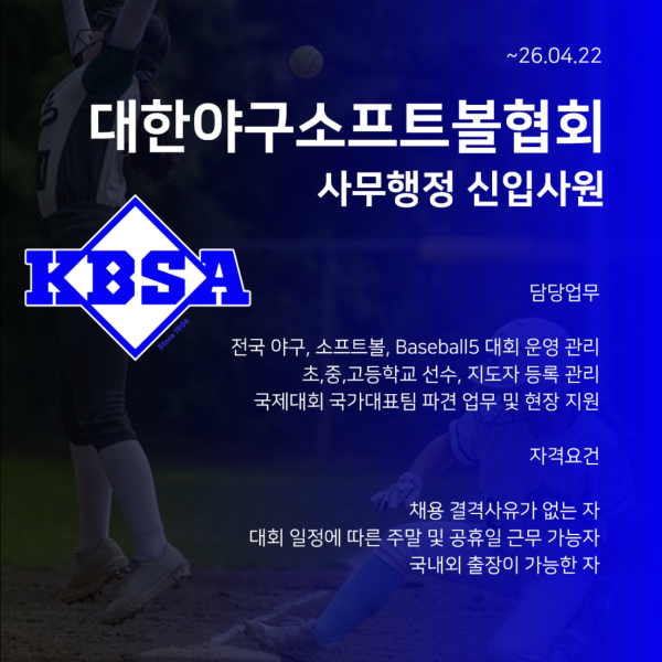 [대한야구소프트볼협회] 신입사원 채용공고(사무행정)