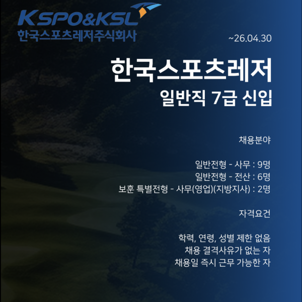 [국민체육진흥공단 자회사] 한국스포츠레저(주) 신입직원 채용 공고