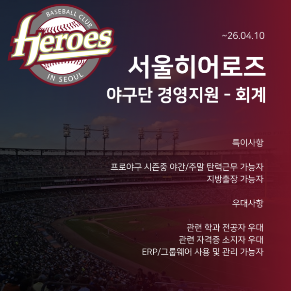 [서울히어로즈] 프로야구단 키움 2026년 지원팀 채용 공고