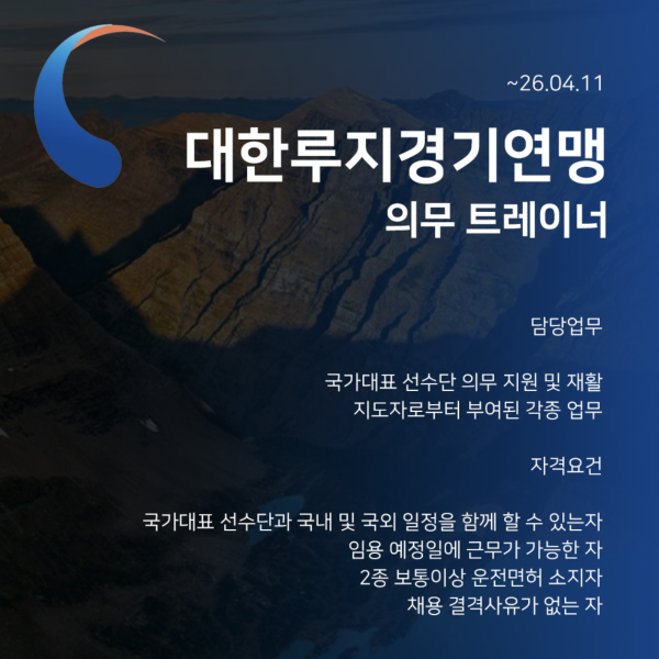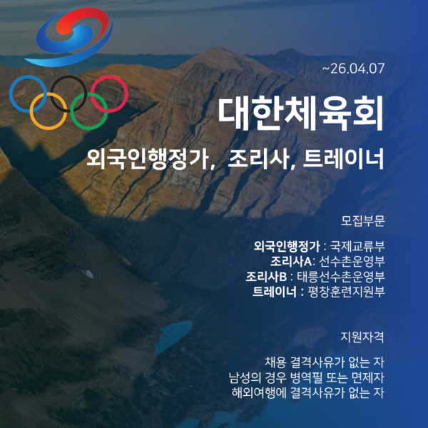 [대한체육회] 외국인행정가, 조리사, 트레이너 공개채용(2026년 대한체육회 제2차 계약직