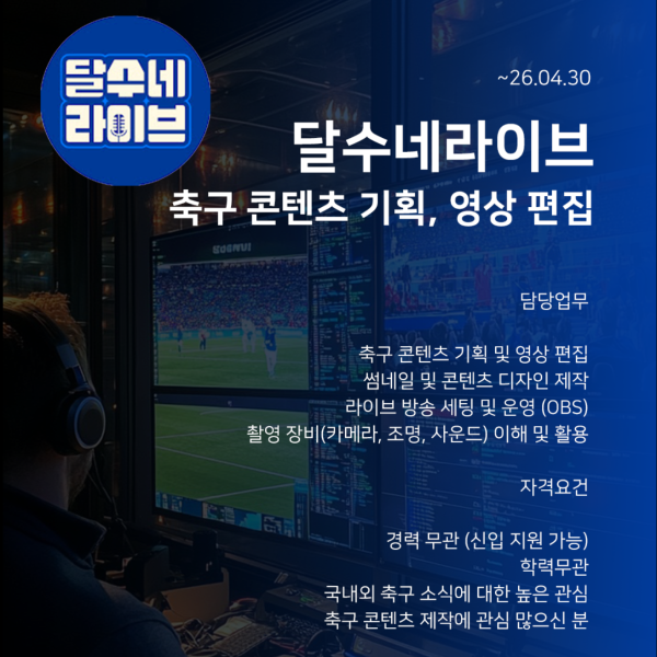 [달수네라이브] 축구 콘텐츠 기획·영상 편집 담당 채용