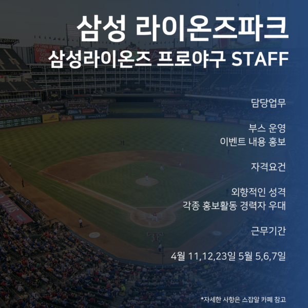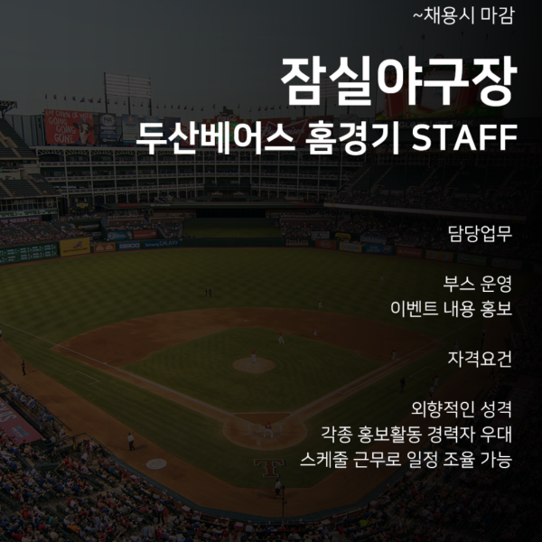 [잠실야구장] 두산베어스 홈경기 행사 STAFF 모집