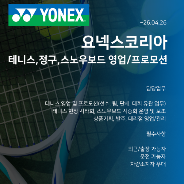 [요넥스 코리아] 테니스, 정구, 스노우보드 영업 및 프로모션 담당