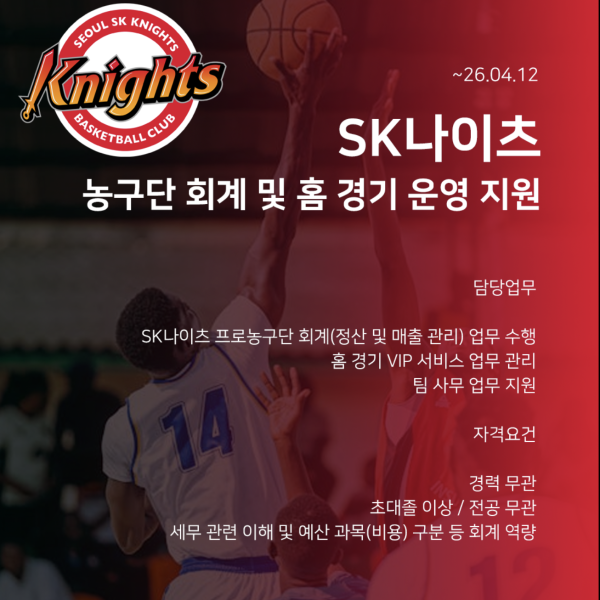 [NC 다이노스] 프로야구단 2026 경영지원파트 채용형 인턴 채용 공고