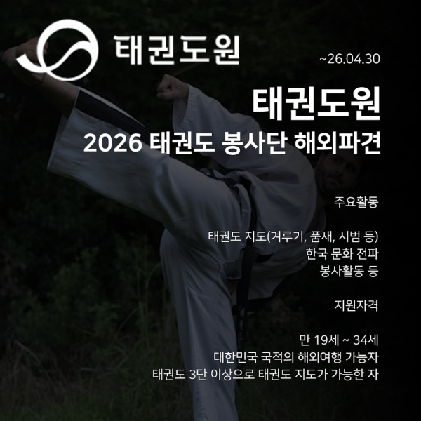 [태권도원] 2026 태권도 봉사단 모집 안내