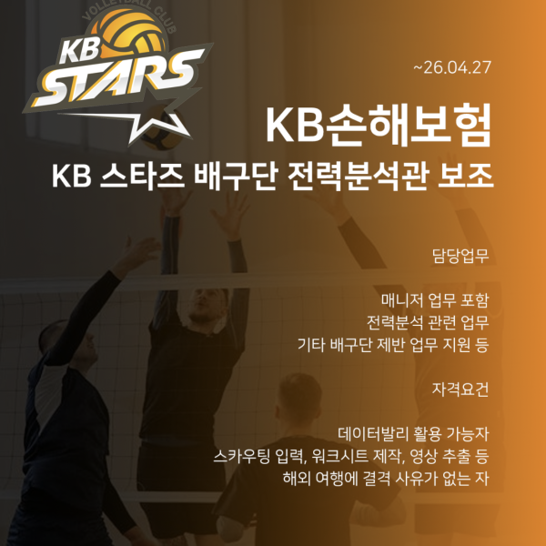 [KB손해보험 스타즈 배구단] 트레이너 채용 모집 공고(경력 무관)