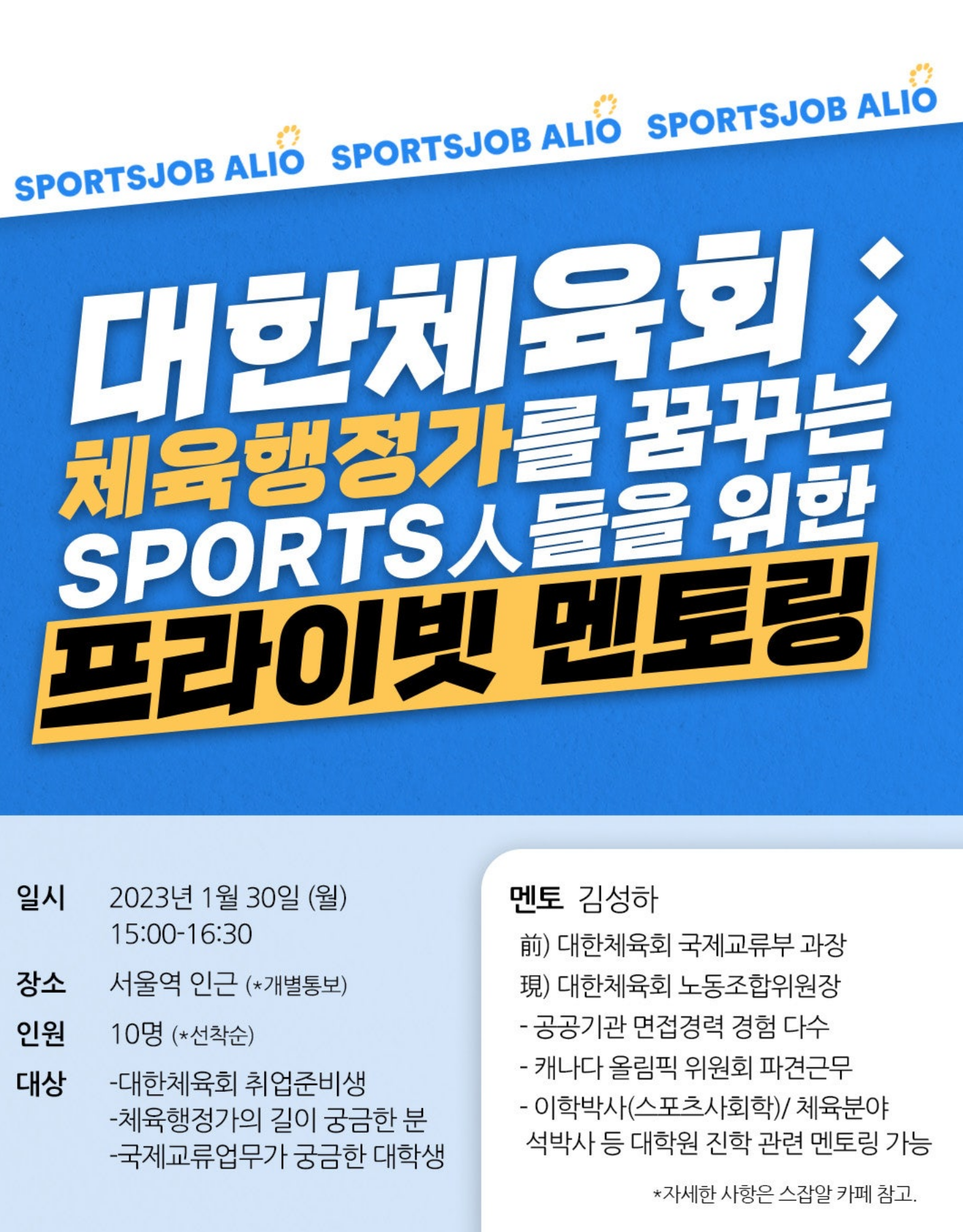 2023.01.20"대한체육회 ; 체육행정가를 꿈꾸는 SPORTS人들을 위한 프라이빗 멘토링"