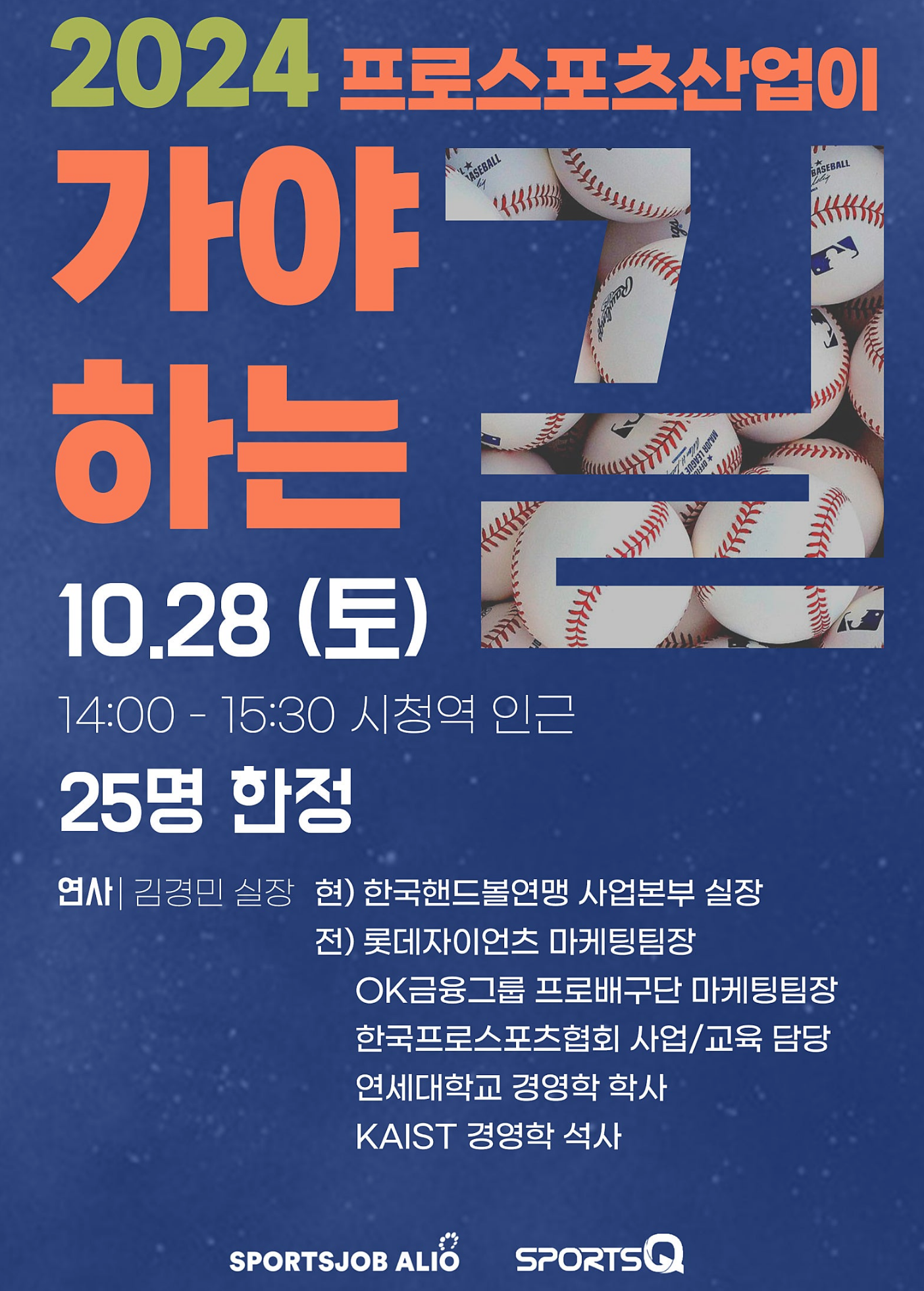 "2024프로스포츠산업이 가야하는 길" 이라는 주제로 10/28(토) 14:00에 개최됩니다.
